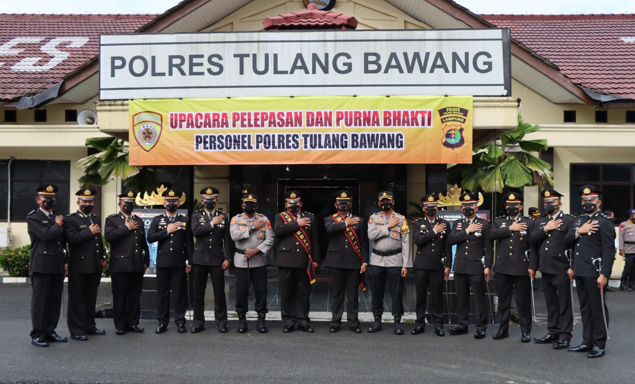 Pelepasan kedua pama yang purna bakti (pensiun) ini, dilakukan secara kedinasan melalui upacara yang dipimpin langsung oleh Kapolres Tulang Bawang, AKBP Hujra Soumena, SIK, MH, hari Rabu (09/02/2022) siang.