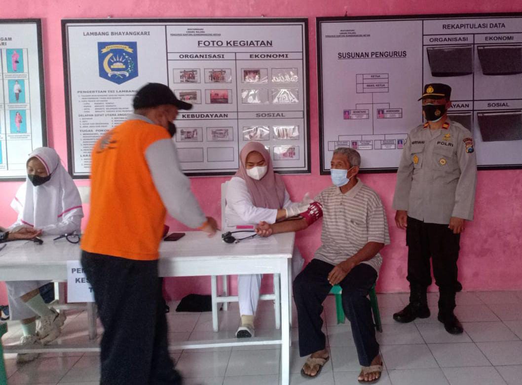 Sebelum dilakukan vaksinasi oleh tim vaksinator dari DOKPOL Polres Malang, para peserta vaksin di screening terlebih dahulu, kemudian dilaksanakan vaksinasi.