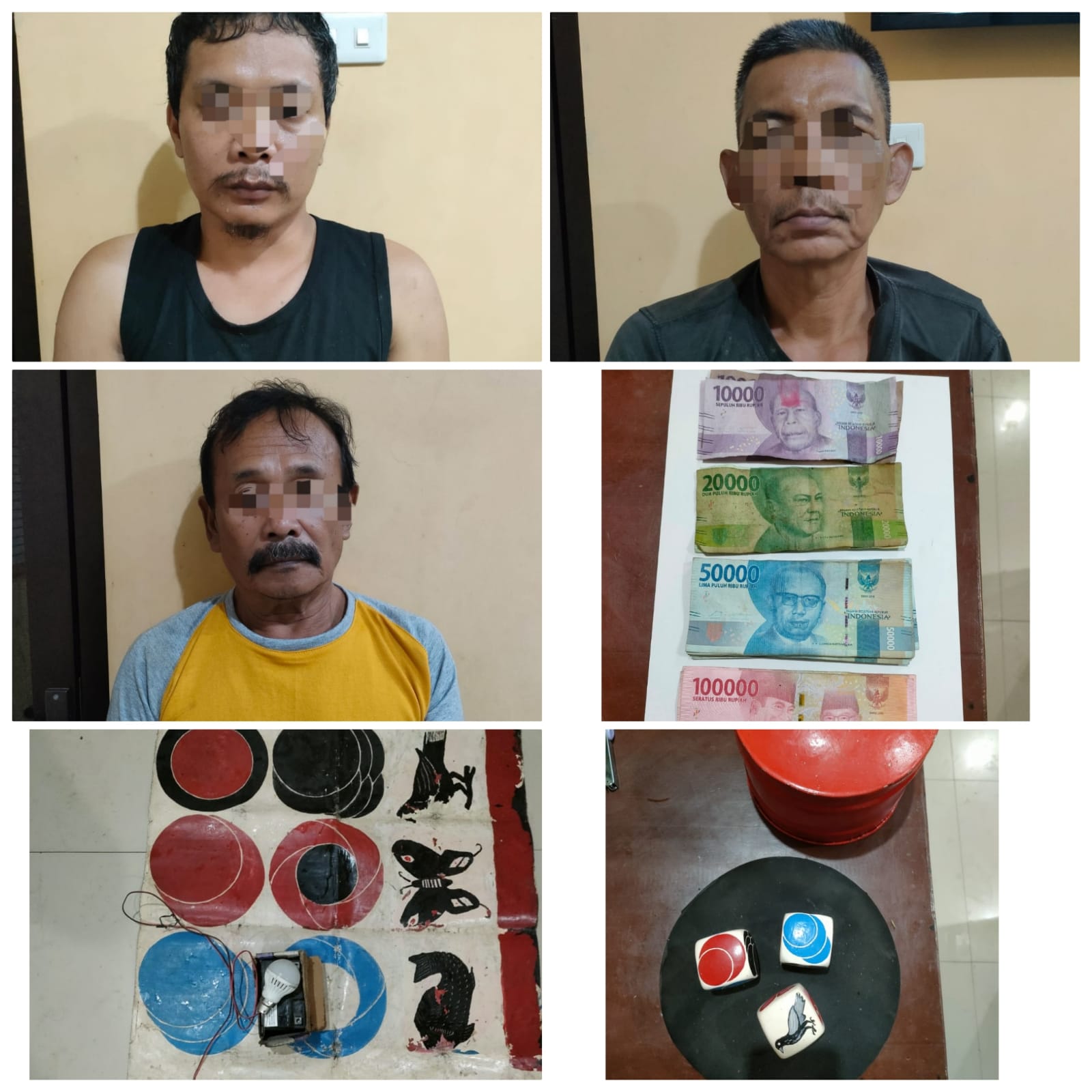 1 (satu) unit alat komunikasi HP OPPO A1K warna hitam, satu unit motor jenis Honda supra fit warna hitam D 3850 SFF, satu unit motor jenis Honda Beat warna putih BE 4186 QK, satu unit motor jenis yamaha Vixon warna putih AL 1 MS, satu unit motor jenis Honda Revo warna hitam BE 6775 QH, satu unit motor Suzuki jenis FU warna A 6548 AM, satu unit motor jenis honda supra BE 8005 QA, satu potong tekstil pakaian kaos biru dengan tulisan Idul Adha 1442 H, satu buah HP Nokia 105 warna biru muda, satu Pcs bahan dasar kulit dompet, dompet warna hitam denga isi Rp. 15.000 dan SIM B1, satu buah HP OPPO A16 warna biru metalik, dua set kartu remi merk 88 ,25 lembar uang dengan rincian 4 lebar Rp. 100.000, 16 lebar Rp. 50.000, 2 lembar Rp. 20.000 dan 3 lembar uang Rp. 10.000 dengan total sejumlah Rp 1.270.00 (Satu Juta Dua Ratus Tujuh Puluh Ribu Rupiah), berikut lapak koprok bergambar Burung, kupu-kupu, ikan, dan 3 buah mata dadu serta satu set tempurung koprok,” imbuhnya.