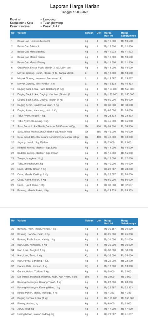 Harga ini terpantau pada selasa pagi (14/3/2023), seluruh harga belum ada kenaikan. Kendati sepekan lagi memasuki bulan ramadhan. Berikut list harga pada selasa pagi.