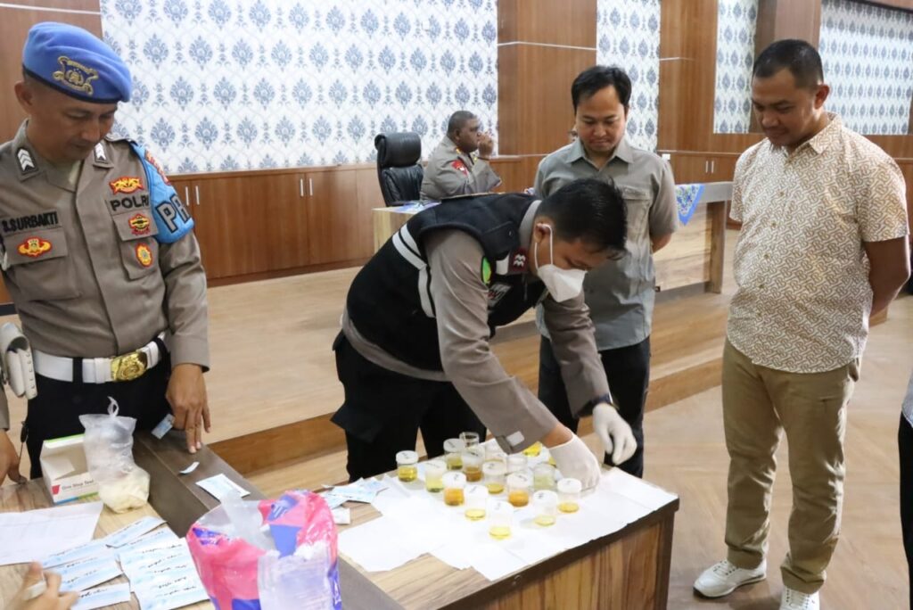 Kegiatan pengecekan urine ini berlangsung hari Rabu (03/05/2023), pukul 09.00 WIB s/d 09.30 WIB, di Aula Mapolres setempat.