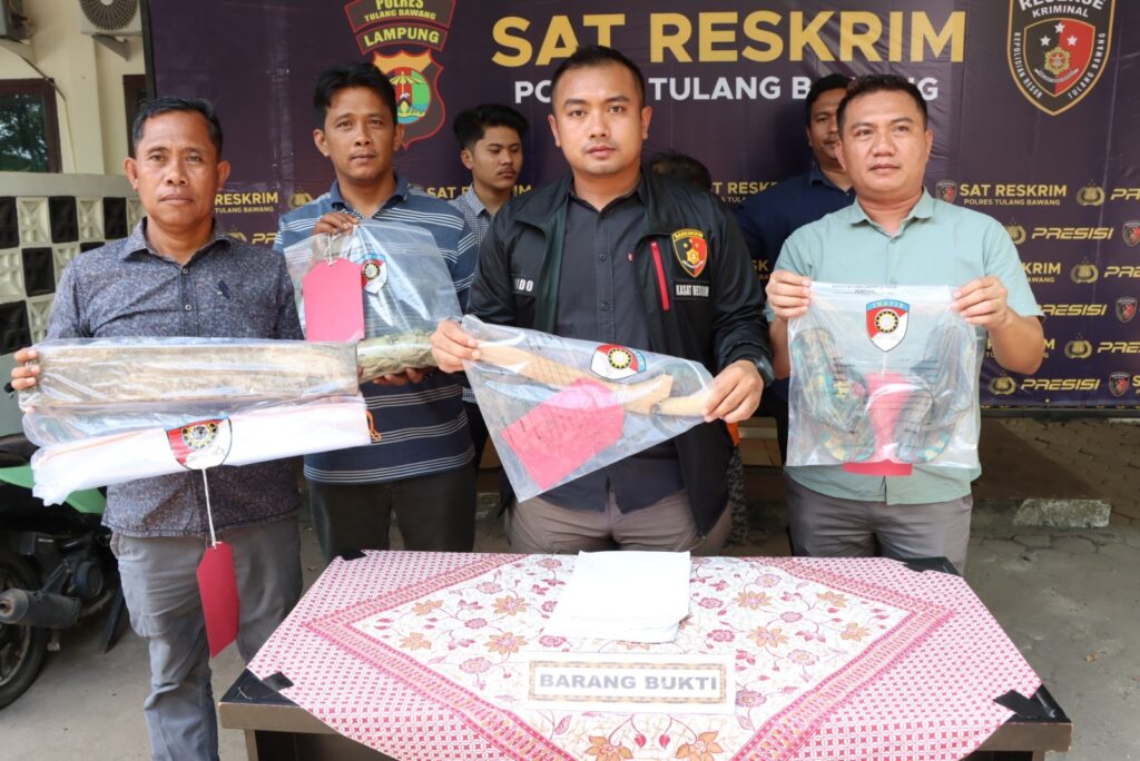 “Pelaku berinisial S als SJ als SG als TG (45), beprofesi wiraswasta, warga Desa Batu Gane, Kecamatan Selangit, Kabupaten Musi Rawas, Provinsi Sumatera Selatan. Ia ditangkap hari Sabtu (16/09/2023), sekitar pukul 15.30 WIB, tanpa perlawanan saat sedang berada di rumanya,” kata Kapolres Tulang Bawang, AKBP Jibrael Bata Awi, SIK, yang diwakili Kasat Reskrim, AKP Wido Dwi Arifiya Zaen, SIK, MH, didampingi KBO Satreskrim, Iptu Abdullah, Kanit Tipidkor, Ipda Sobrun, SH, MH, dan Kanit Resum, Aiptu Robert H Purba, SH, MH, saat menggelar konferensi pers, hari Jum’at (22/09/2023), pukul 13.30 WIB, di Mapolres setempat.