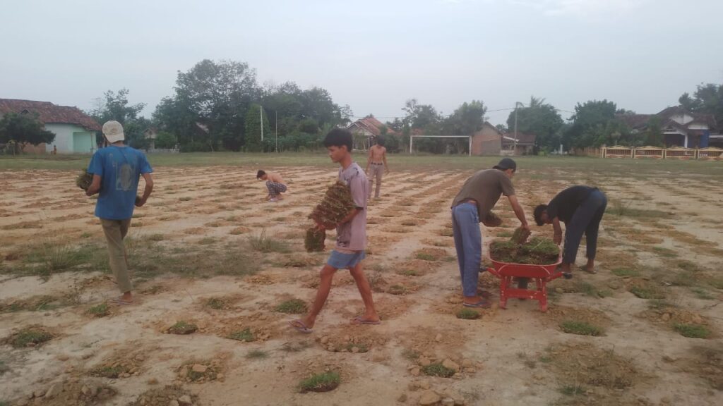 Kegiatan penanaman rumput ini dilakukan karena gundulnya lapangan bola yang hampir semuanya tak lagi ada rumput yang tumbuh, sehingga warga melakukan kegiatan gotong royong penanaman rumput secara bersamaan, kegiatan tersebut merupaka kegiatan Padat Karya Tunai Desa atau PKTD.