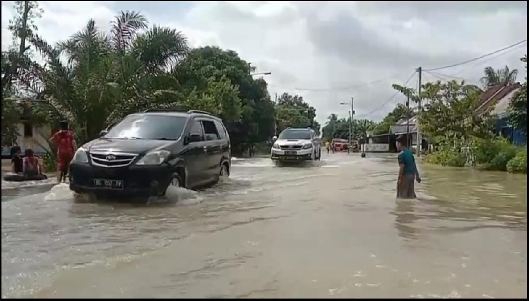BintangSatu.Com,- M e s u j i. Tingginya curah hujan yang mengguyur di kabupaten Mesuji dan daerah lain, menyebabkan debit air pada sungai tinggi lantaran tak dapat menampung. Akibat luapan tersebut air dari sungai way mesuji merendam badan jalan lintas sumatera hingga ketinggian mencapai 50 senti meter.
