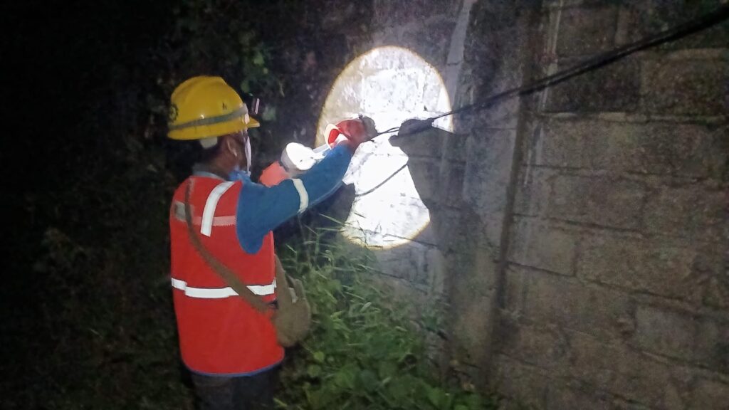 “Tadi kami dihubungi oleh pelanggan bahwa lampu dirumahnya telah padam, sementara lampu tetangga nyala, akhirnya kami menuju ke rumah pelanggan kami, namun sedikit lama karena kami masih memperbaiki kabel yang terbakar di desa kahuripan,setelah itu baru kami menuju rumah pak Yusman dan kami langsung menelusuri kabel yang akhirnya kami temukan bahwa kabel tersebut dalam kondisi putus, setelah kami sambung lampu kembali nyala”. Jelas Deni bersama Wiji selaku Tim Yandal. (Firmanto)